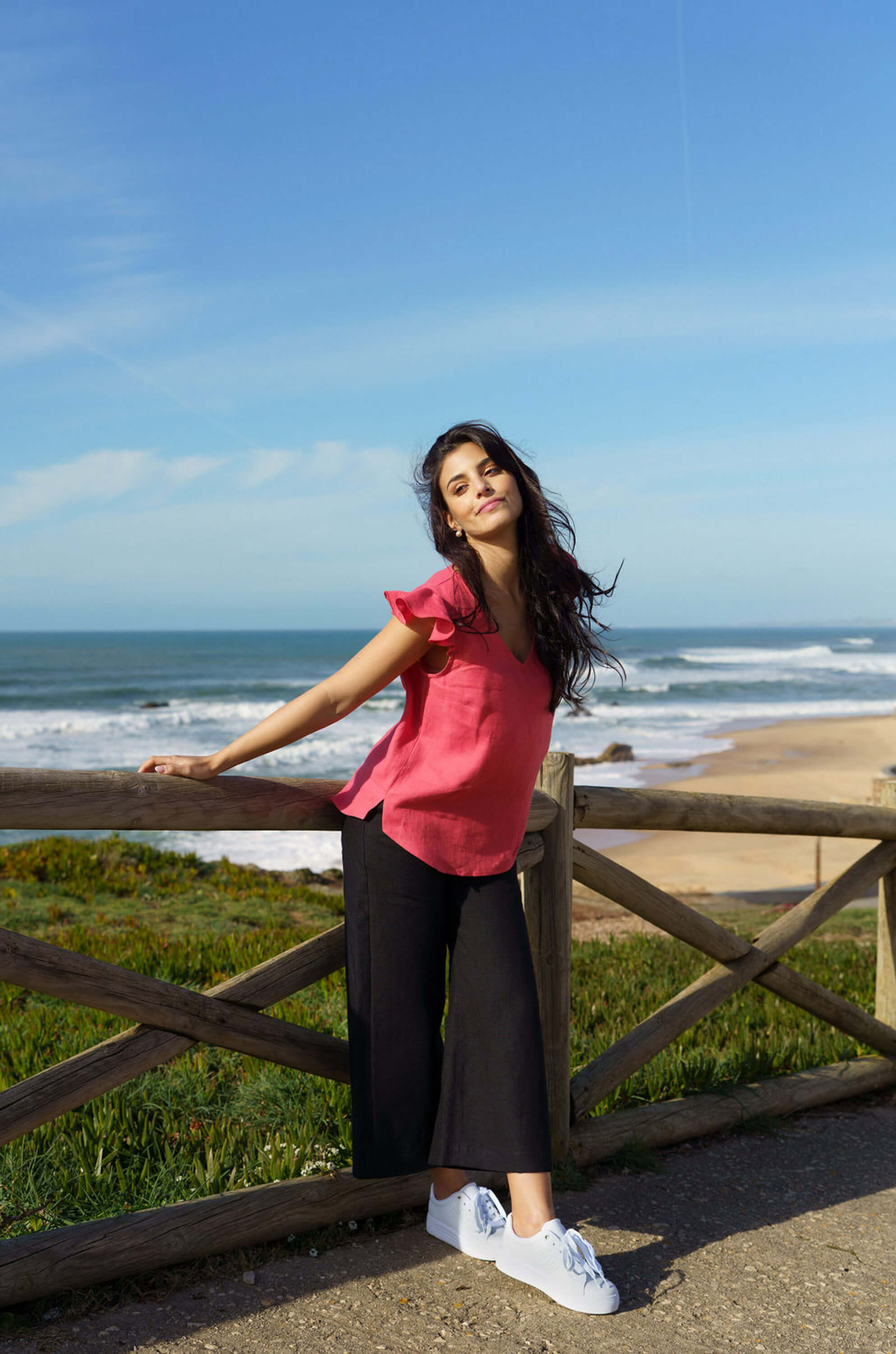 Linen is a light, breathable and carefree material. A linen shirt goes great with jeans, shorts, sneakers and barefoot. The top also pairs beautifully with a skirt for a special occasion!