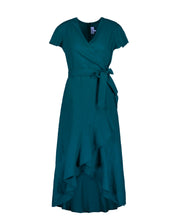 Made of 100% linen fabric, the dress is midi-sized, and the v-neck silhouette is repeated in the cut of the hem. The light linen fabric feels breathable on the skin. The fabric has the Ökötex standard.
