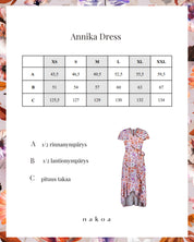 Nakoa's Annika Dress is a feminine eye-catcher. The flattering waistline and waistband that can be tied in different ways ensure a fit for every body, and the flattering shape creates a beautiful silhouette, emphasizing just the right points. The wavy pleats repeated on the hem and sleeves fall beautifully on the light fabric and take the mind to adventures in the cobblestone alleys of Southern Europe or to happy summer days with your toes against the freshly cut lawn. The lining of the dress adds a level of carefreeness.