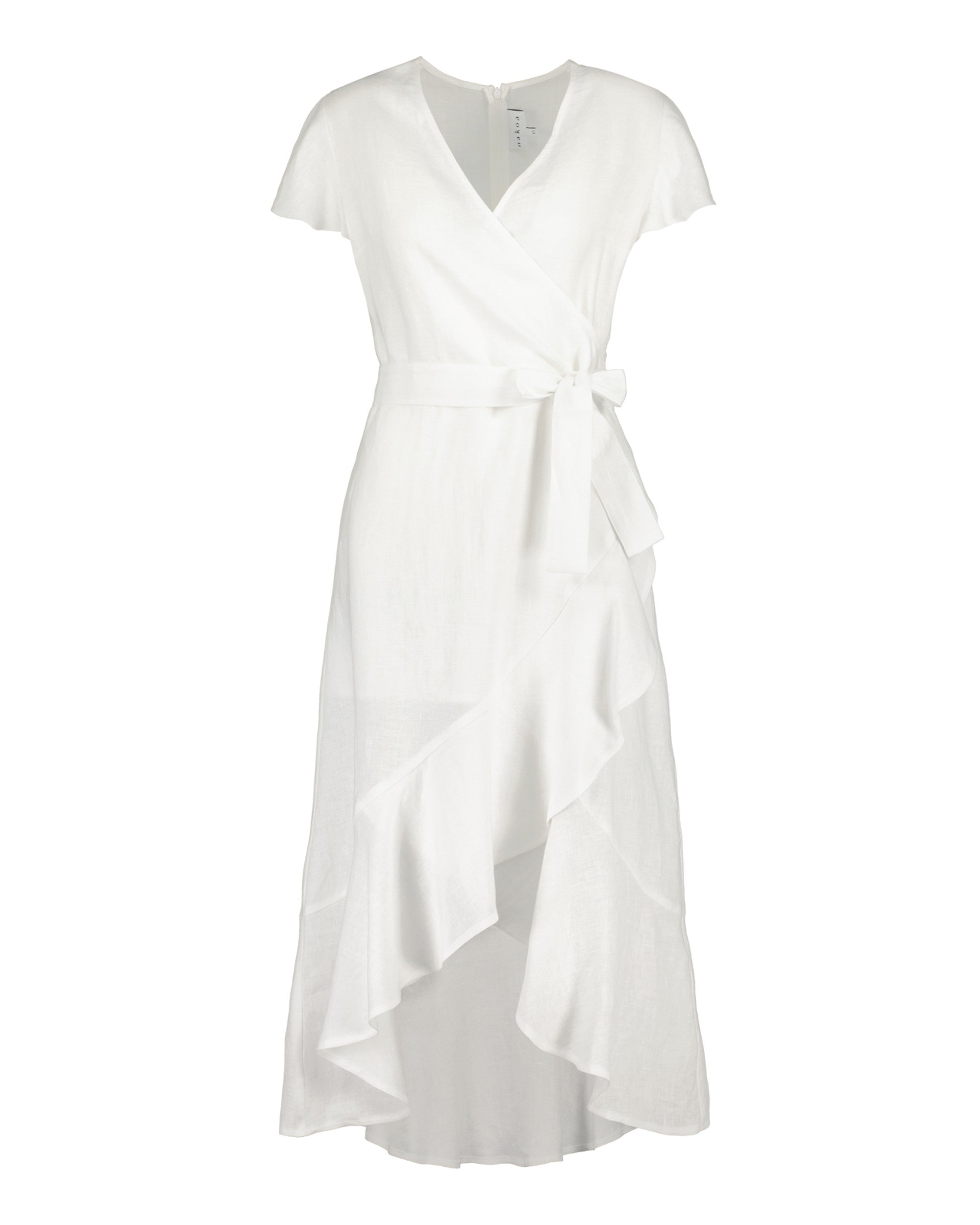 Made of 100% linen fabric, the dress is midi-sized, and the v-neck silhouette is repeated in the cut of the hem. The light linen fabric feels breathable on the skin. The fabric has the Ökötex standard.