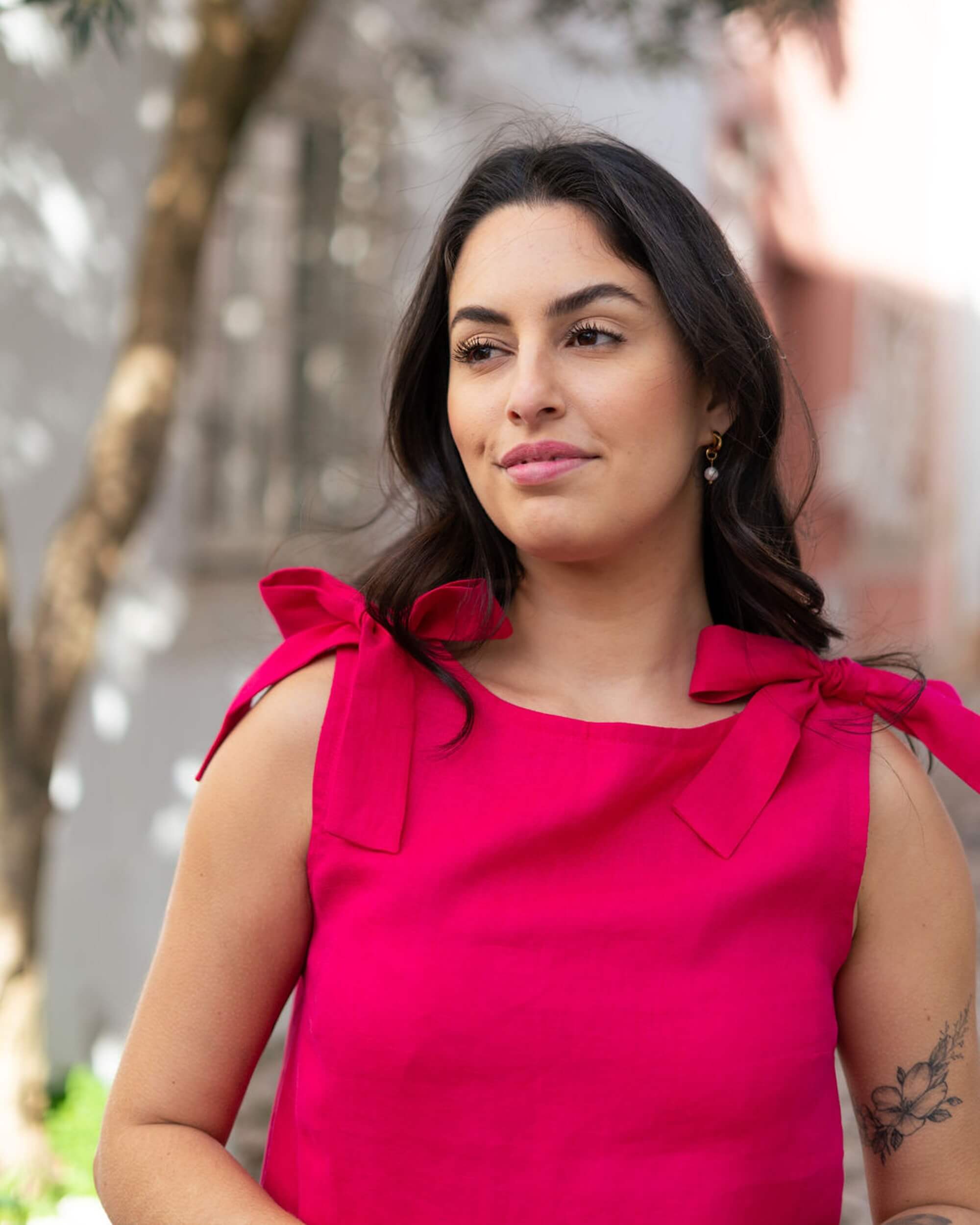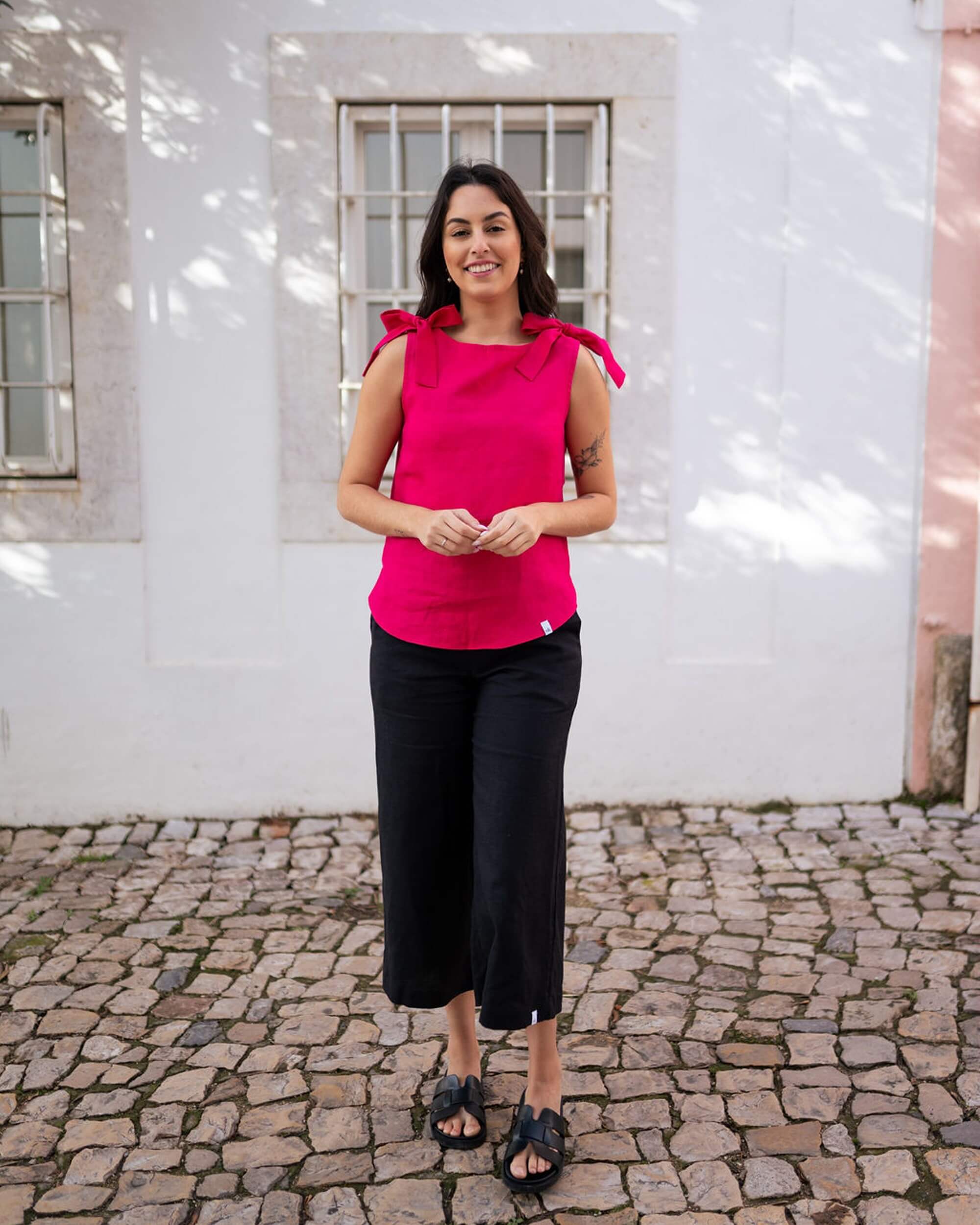 The new Lauren Top is a simple, stylish and feminine short-sleeved top. Celebrating carefree femininity, the Lauren Top fits beautifully on each body. The simple design is balanced with the feminine bows on the shoulders, which bring an elegant detail to the top. Linen fabric makes the garment a multi-purpose and long-lasting choice for every day, both for the office and for occasions.