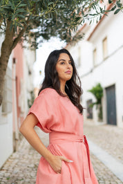 This dress charms with its minimalist silhouette, which makes it a timeless classic. Dropped shoulders add a casual look, while side slits provide freedom of movement and airiness. In addition, the dress includes a wide belt, which you can tie to emphasize the waist and bring more posture to the outfit. Naomi Dress is the perfect choice for relaxed summer days.