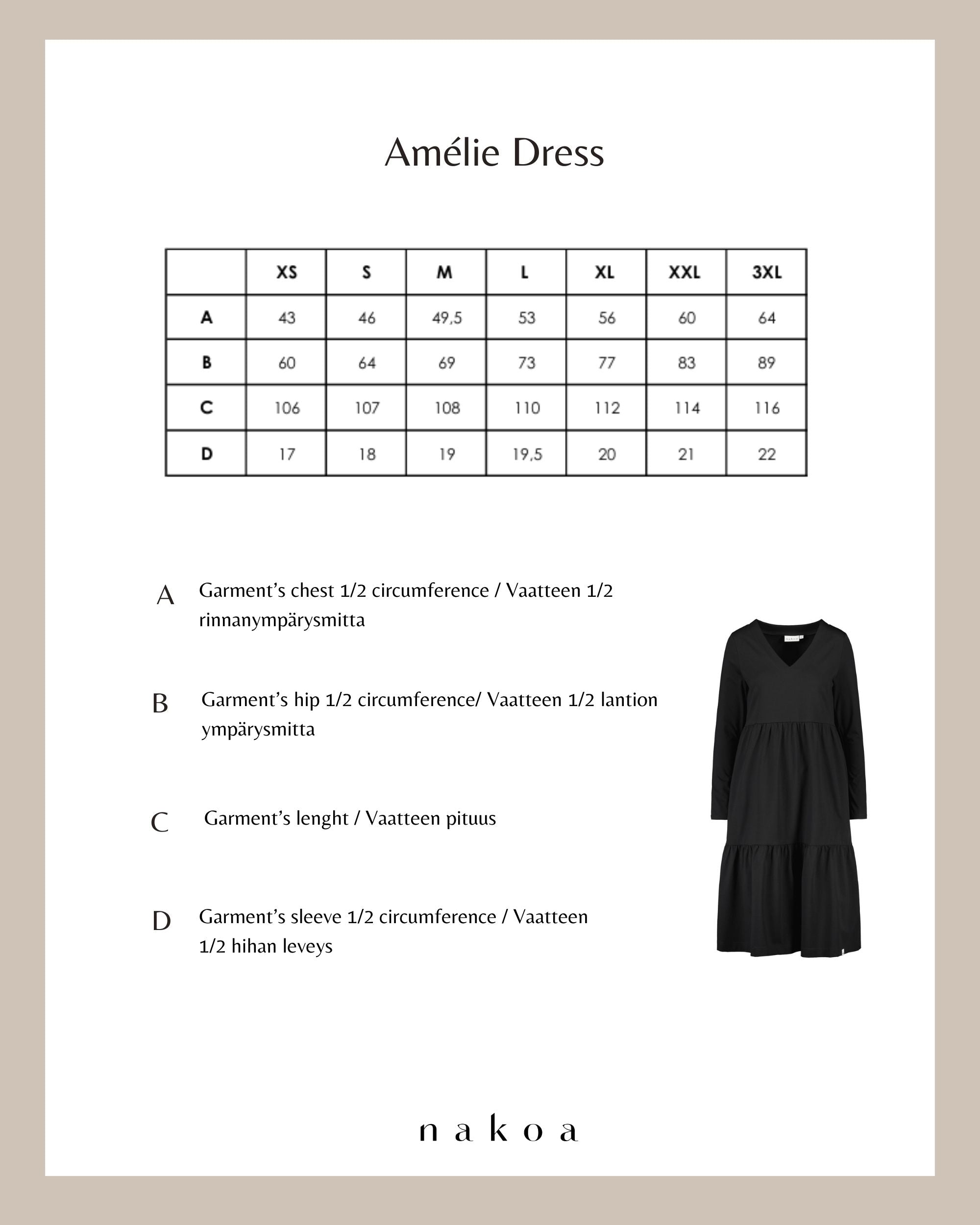 Amélie Dress layered dress is a high-quality and timeless must-have dress for autumn days. The fabric is soft and high-quality GOTS-certified cotton elastane from Lithuania. The fabric feels pleasant on the skin.