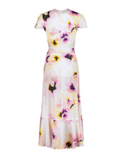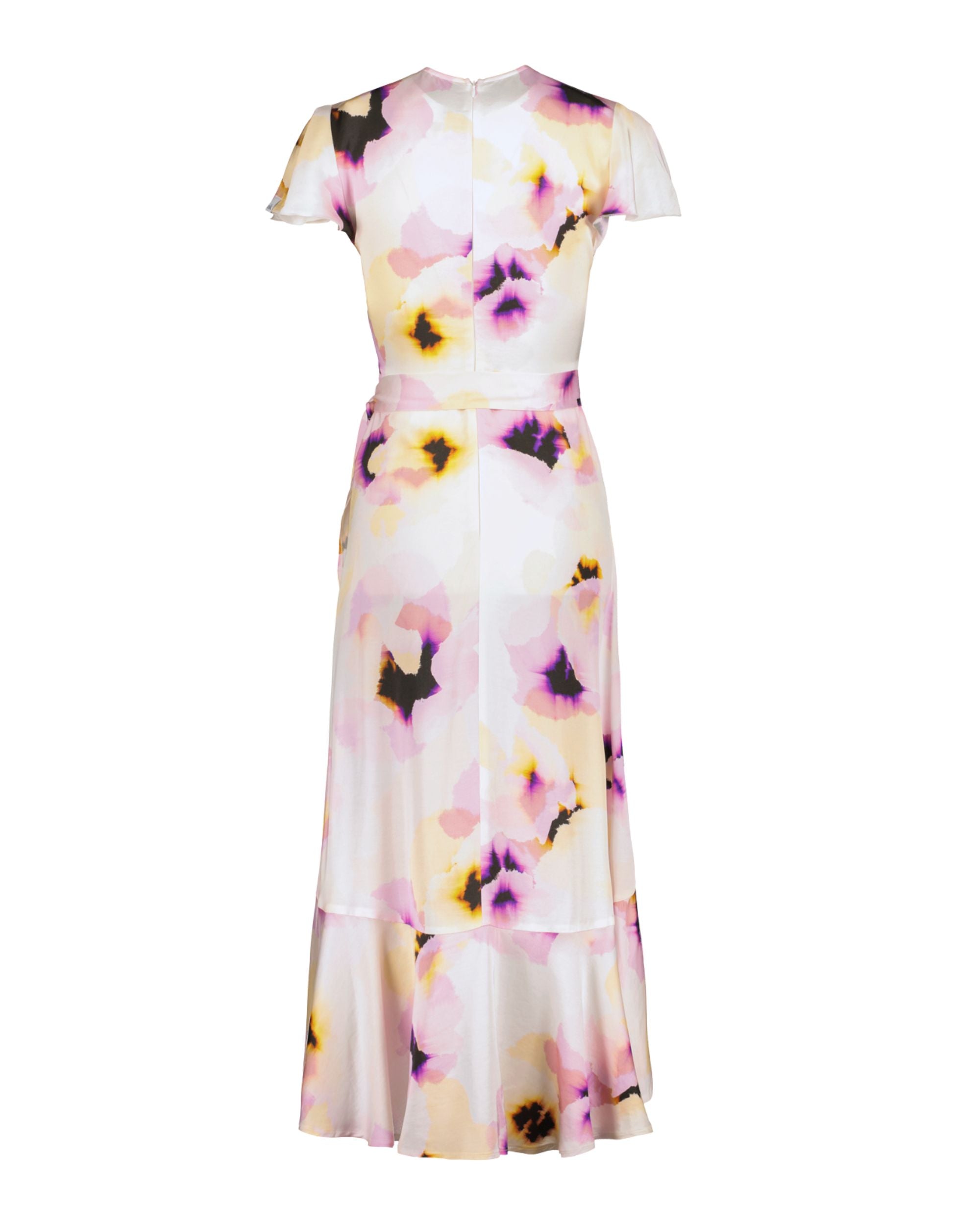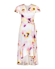 The Amber pattern gives the dress a fresh and trendy look. Its white base creates a clean background, enlivened by shades of lilac and pale yellow. The deep lilacs provide contrast, while the light yellow details create a lovely summery atmosphere. This dynamic pattern combines modern style with timeless elegance, making the Annika Dress a perfect choice for both festive and everyday wear.