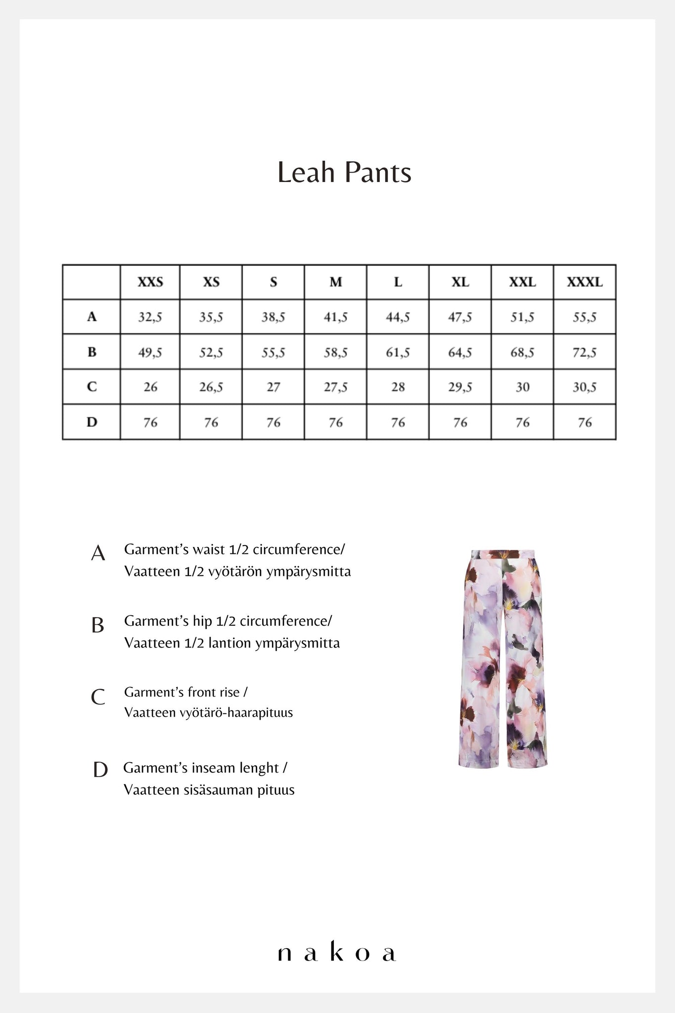 Tutustu uusiin Leah-housuihin! Leah-housujen ilmava ja väljä leikkaus tarjoaa mukavuutta ja liikkumavapautta, samalla säilyttäen tyylikkään siluetin. Housujen hienostunut, mutta rento tyyli sopii täydellisesti monenlaisiin asukokonaisuuksiin, oli kyseessä sitten rento päivä kaupungilla tai kevyt illallinen ystävien kanssa. Housuissa on taskut ja käyttömukavuutta lisäävä kuminauha vyötärön takaosassa.