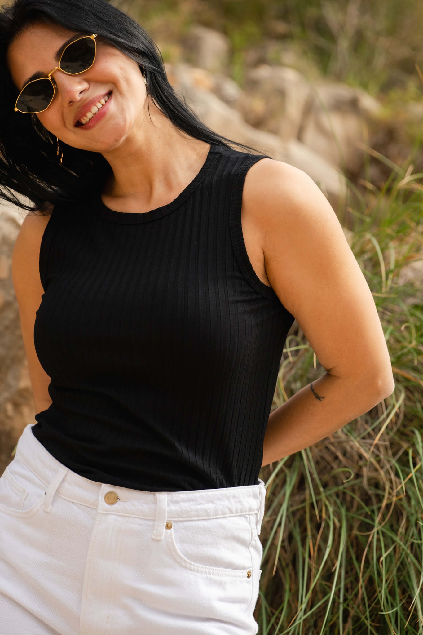 Rib Top yhdistää tyylikkään muotoilun ja mukautuvan istuvuuden. Toppi seuraa kauniisti vartalon linjoja, mutta ei ole liian tiukka, mikä tekee siitä täydellisen valinnan arkeen. Pehmeä ja joustava rib-kangas takaa miellyttävän tunteen päällä, ja sen yksinkertainen, mutta klassinen leikkaus sopii monenlaisiin yhdistelmiin. Rib-kankaassa on leveät pystyraidat, joka luo elegantin tunnelman pelkistettyyn designiin. Paidassa on pyöreä pääntie. Monikäyttöinen ribbitoppi on laadukas vaatekaapin kulmakivi, joka on helppo kerrostaa esimerkiksi jakun tai neuletakin alle ja lämpiminä päivinä pellavahameen pariksi.